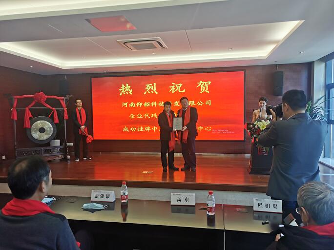 熱烈祝賀澠池仰韶科技公司成功掛牌中原股權(quán)交易中心
