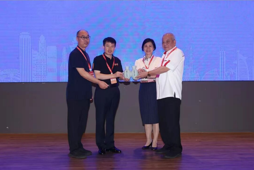 河南仰韶科技開發(fā)有限公司董事長王新軍現(xiàn)場贈送由王新軍非遺團隊創(chuàng)作禮品:仰韶瓷雙聯(lián)壺。圖為王新軍大師和會長論壇發(fā)起人、會長論壇組委會會長徐軍昌,中國駐馬來西亞大使館馬翠宏參贊、馬來西亞(華總)會長丹斯里吳添泉博士的合影。