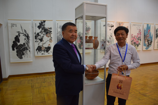向吉國議員贈(zèng)送彩陶雙聯(lián)壺留念